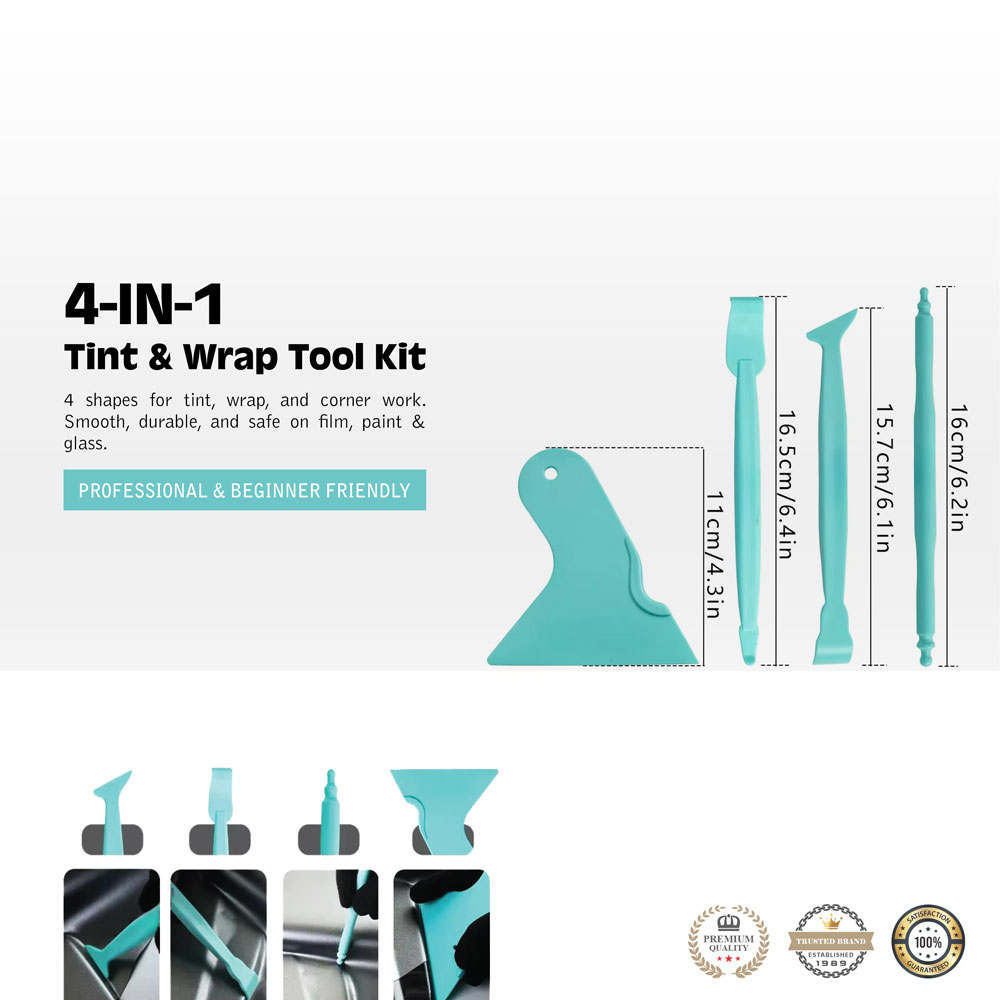 Upgrade your tinting, wrapping, and PPF projects with this 4-in-1 Tint, Wrap & PPF Tool Kit, specially designed for car detailing, window film installation, and vinyl wrap application. Each tool features a unique shape to handle tricky corners, edges, seams, and tight spaces with ease.