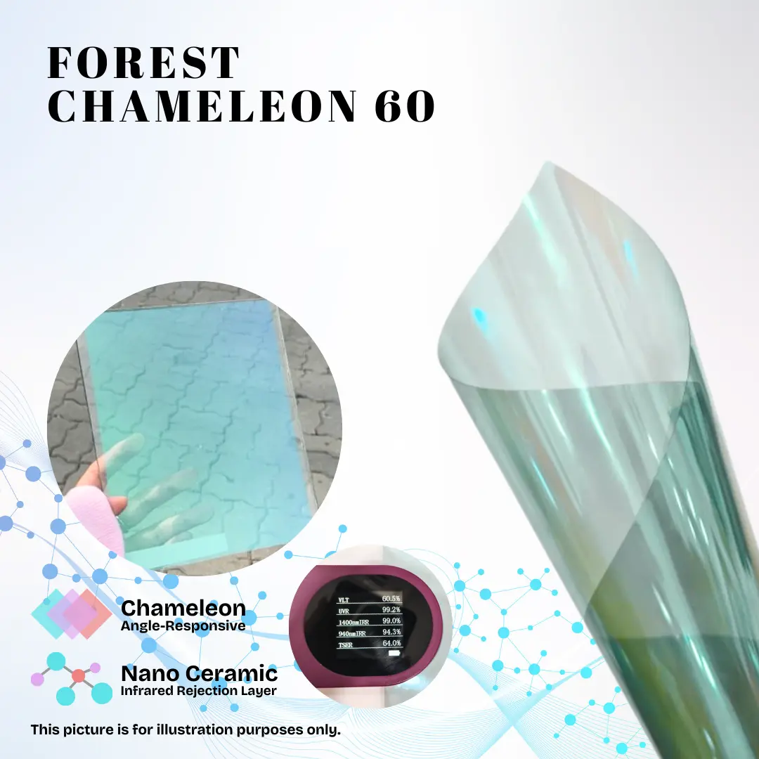 This advanced chameleon-tinted nano ceramic coating is engineered to provide superior protection against IR and UVR, while maintaining exceptional optical clarity and durability, making it ideal for automotive, architectural, and high-performance applications.